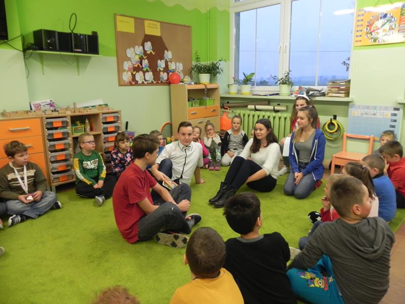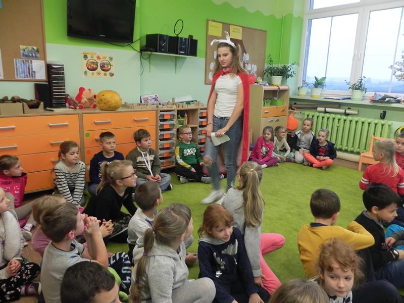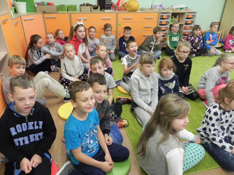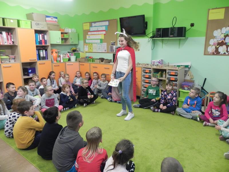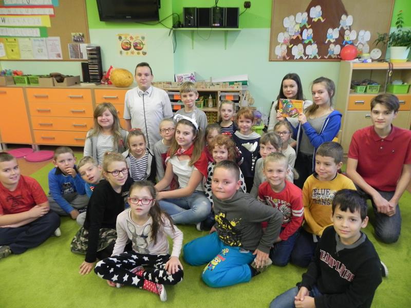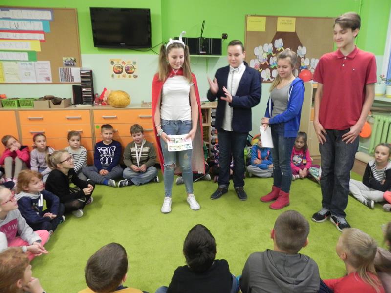Każdy z nas ma nie tylko swoje ulubione książki ale i ulubionych bohaterów. Jacy są wasi ulubieni bohaterowie książek, czy z którymś się utożsamiacie, co w nich najbardziej lubicie? W poniedziałek 24 października w ramach projektu gimnazjalnego „Dzień Języka Ojczystego” oraz obchodów Szalonego Tygodnia Biblioteki Szkolnej uczniowie klasy II A gimnazjum przygotowali dla uczniów naszej szkoły akcję pod hasłem „Jestem bohaterem książki”. Gimnazjaliści rozpoczęli niecodzienne lekcje, których celem było upowszechnianie czytelnictwa, a przede wszystkim rozwijanie zainteresowań czytelniczych wśród uczniów naszej szkoły. Przeprowadzili lekcje w klasach I – III edukacji wczesnoszkolnej podczas których, przybliżyli bohaterów lektur szkolnych. Przygotowali dla uczniów wiele atrakcji: scenki dramowe, rozwiązywanie krzyżówek, zajęcia plastyczne, oglądanie fragmentów filmu animowanego oraz głośne czytanie fragmentów lektur.