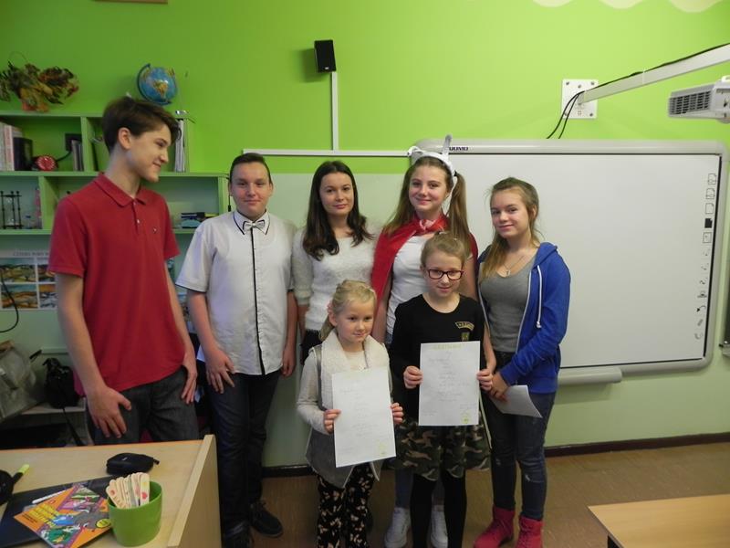 Dziękujemy: Damianowi Prendeckiemu, Zuzannie Stefańczyk, Oliwii Stawińskiej, Dobrosławie Kubiak, Jakubowi Swiontek Brzezińskiemu oraz opiekunom projektu p. Dorocie Klimkiewicz, p. Paulinie Kurasz i p.Teresie Mierzwa za zaangażowanie w obchody święta biblioteki oraz ciekawe lekcje.