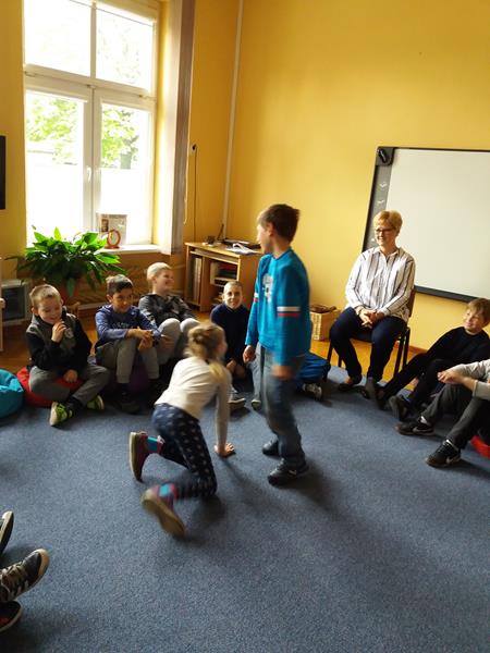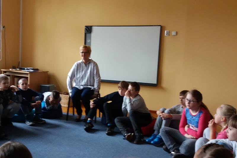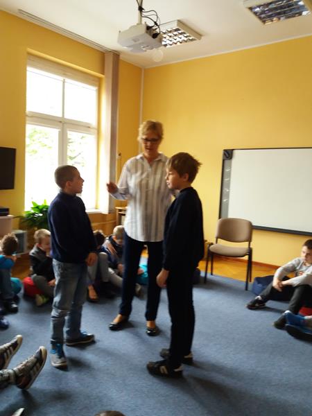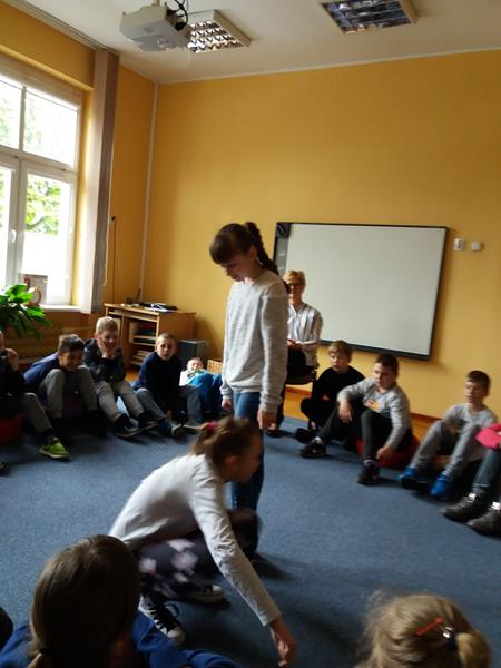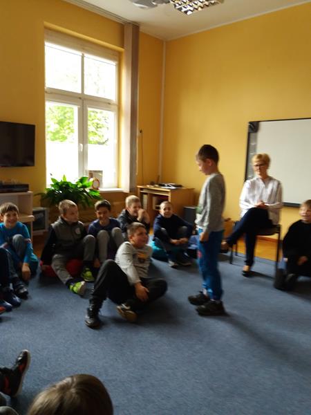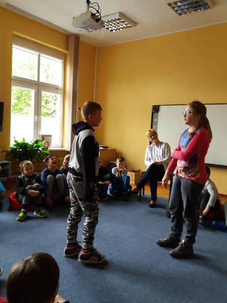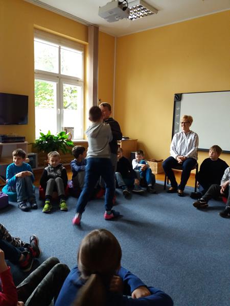 Klasa III uczestniczyła w zajęciach pod hasłem Dręczenie i przemoc w szkole – zajęcia z elementami biblioterapii przygotowanych przez p. Iwonę Bukowską. Na wstępie spotkania uczniowie dzielili się informacjami na temat przemocy, jej rodzajów, przejawów. Po spontanicznej wymianie zdań nadszedł czas na relaks z książką. Prowadząca zajęcia przeczytała fragment książki pod tytułem „Siedmiu wspaniałych i sześć innych nie całkiem nieznanych historii” autorstwa Roksany Jędrzejewskiej- Wróbel, w którym to wredny wilk z VI B prześladował ufnych pierwszaków. Uczniowie mieli czas na refleksję dotyczącą ich relacji z koleżankami i kolegami z klasy, szkoły, podwórka oraz odpowiedź na pytanie czy te kontakty interpersonalne są poprawne, właściwe. Wspólnie doszli do wniosku jak należy radzić sobie w trudnych, a czasami niebezpiecznych sytuacjach. Dzieci zachęcone przez p. Iwonę odgrywały scenki, w których wskazywały z jakimi przejawami przemocy i dręczenia „spotkały się”. Wcielały się i zamieniały rolami dręczyciela i ofiary. Miały okazję stanąć po obu stronach lustra.