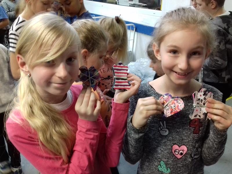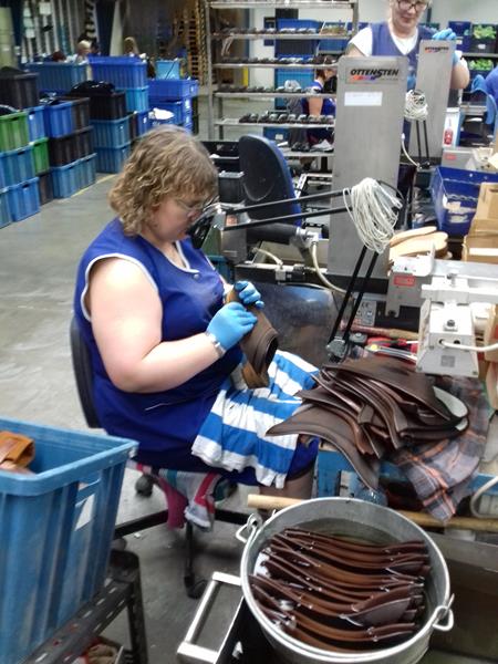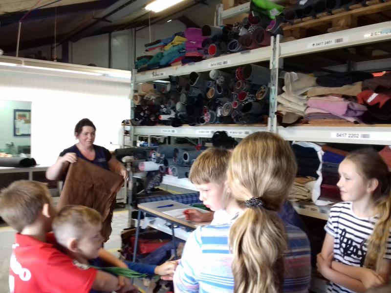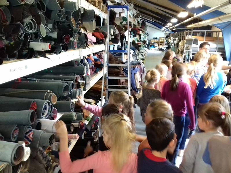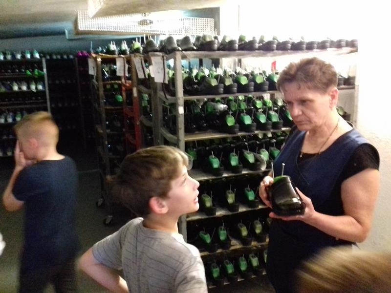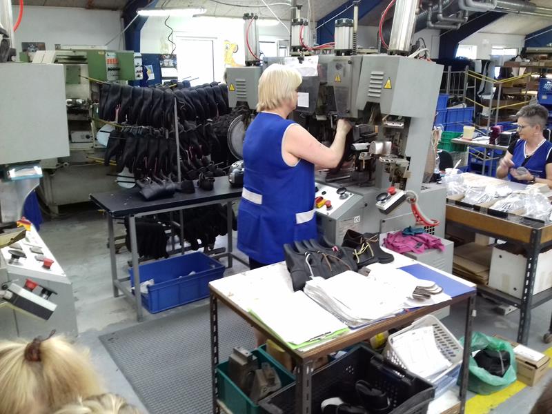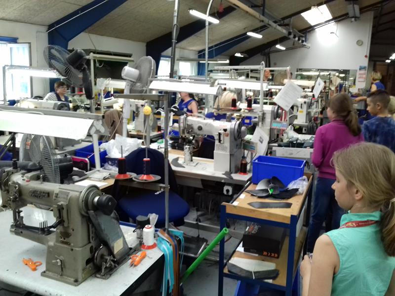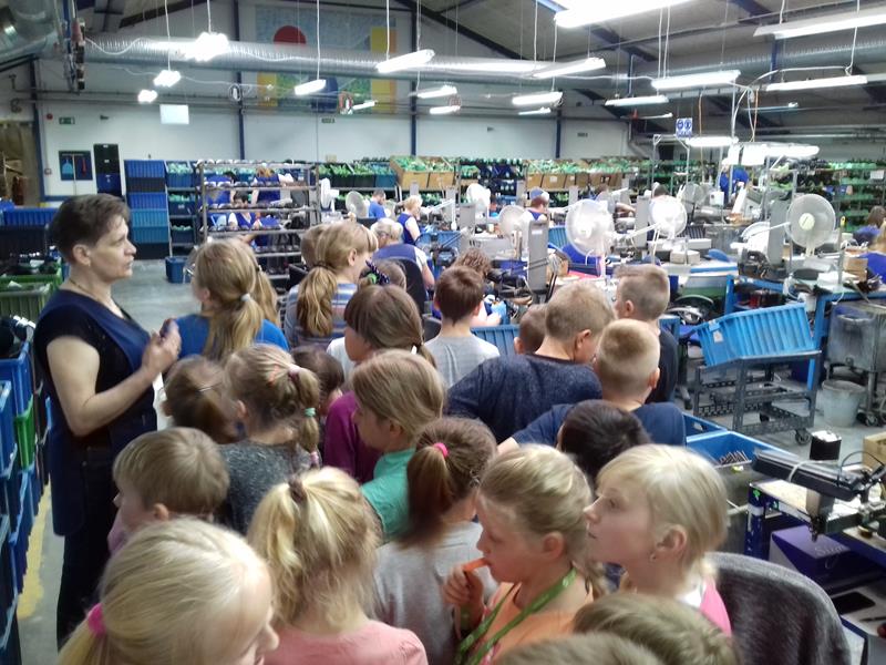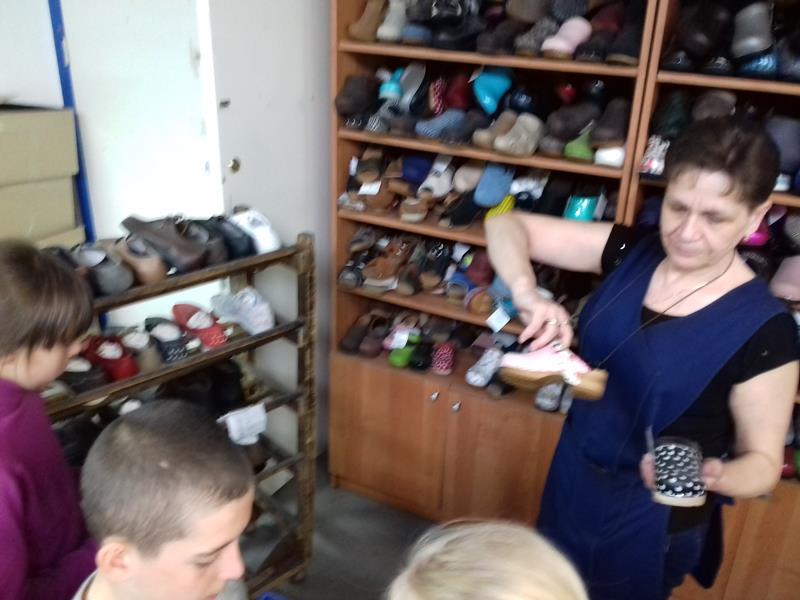 Możliwość zwiedzenia firmy zawdzięczamy jednej z mam – pani Katarzynie Pastuszka, która jest pracownikiem SANITY. Po halach produkcyjnych oprowadziła dzieci pani Basia. W magazynie skór uczniowie oglądali różnego rodzaju skóry, które cieszyły oczy swoimi bajecznymi, egzotycznymi wzorami i szeroką gamą barw. Skóry trafiają na krajalnię, następnie do szwalni. Wyprofilowane na kopytach, przymocowywane są do drewnianej podeszwy specjalnymi maszynami, po czym suszone w suszarni. Po sprawdzeniu jakości trafiają do pudełek, następnie do ogromnych kartonów i czekają w magazynie na eksport. Dziennie produkowanych jest tu 2300 par butów, przy produkcji których pracuje ok.170 osób. Te piękne chodaki trafiają m. in. do Danii, Szwecji, Holandii. Na pamiątkę spotkania uczniowie otrzymali skórzane próbki o różnych kształtach. Wrócili do szkoły bogatsi w wiedzę i bardzo zadowoleni. Serdecznie dziękujemy pani Katarzynie Pastuszka za zorganizowanie wspaniałej wycieczki.