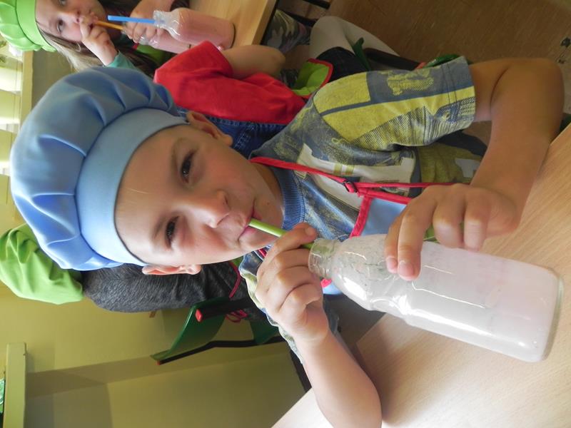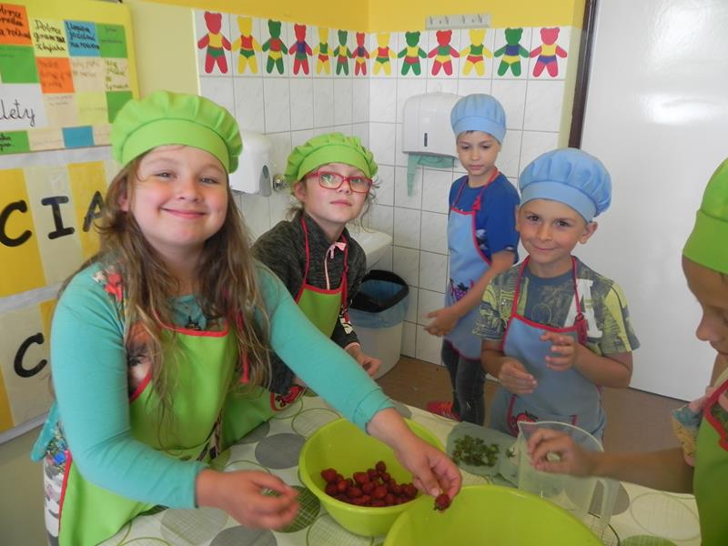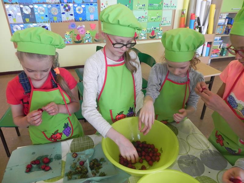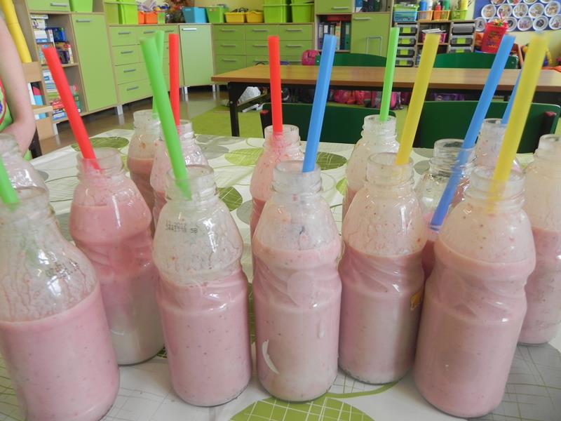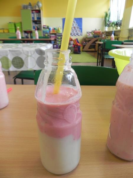 Dnia 8 czerwca podczas zajęć kulinarnych zorganizowanych w ramach innowacji pedagogicznej uczniowie klasy IIa przygotowali koktajl truskawkowo- bananowy.