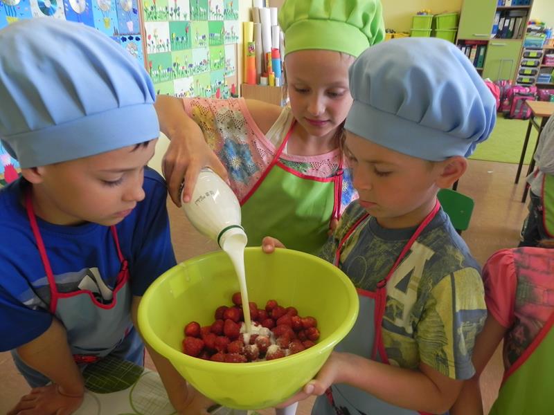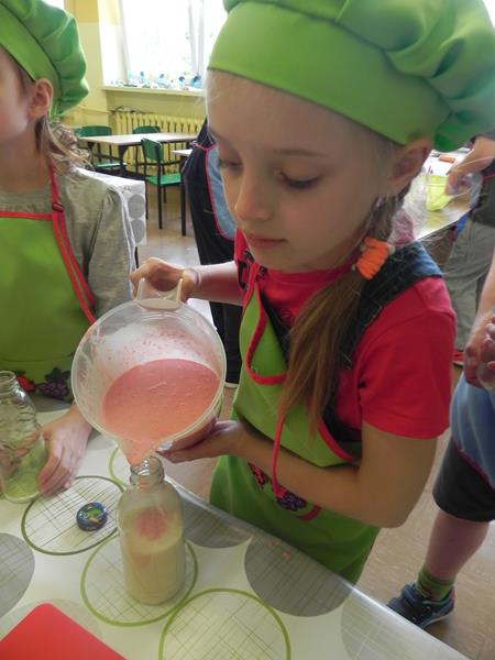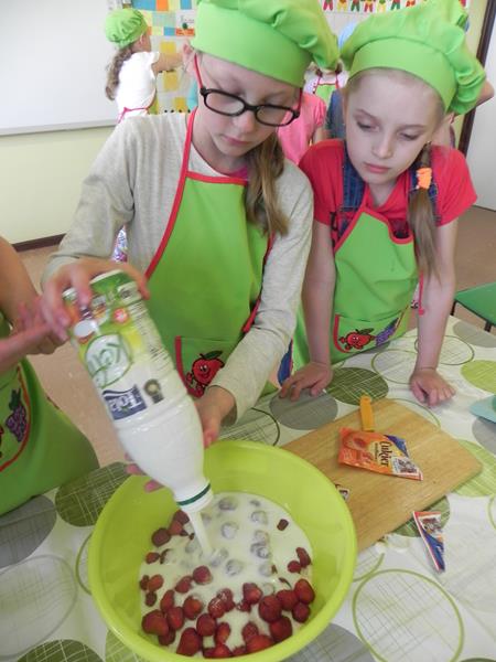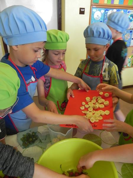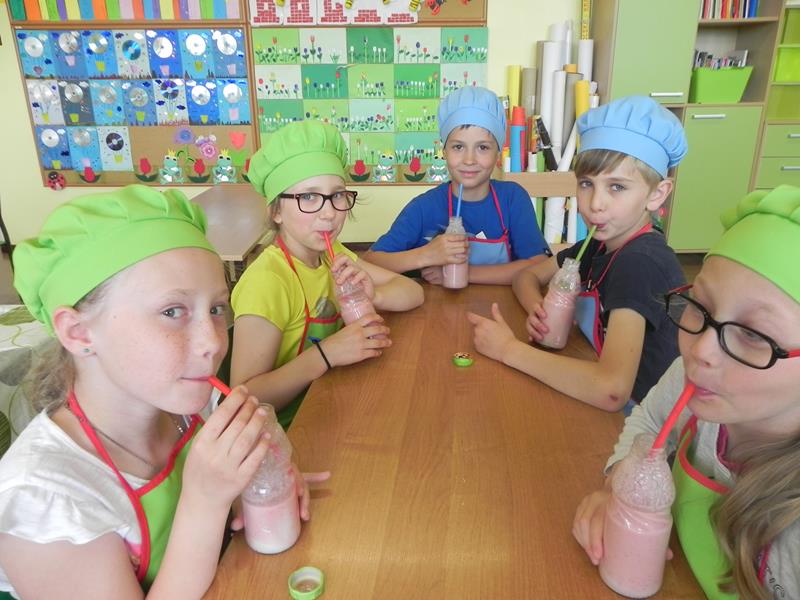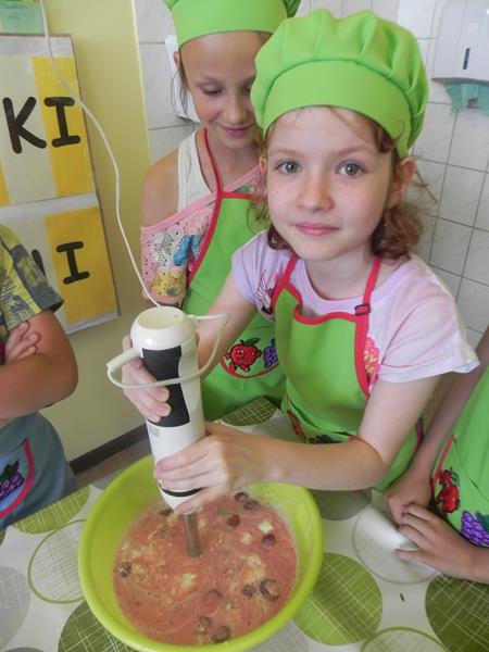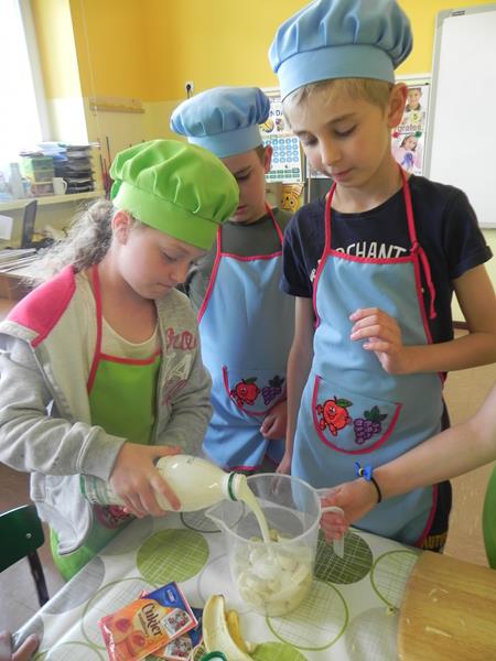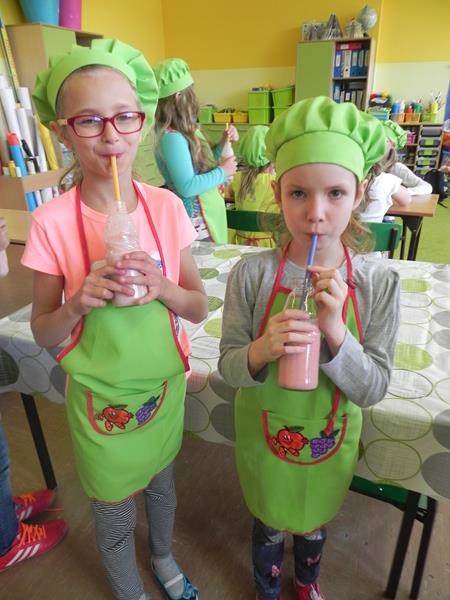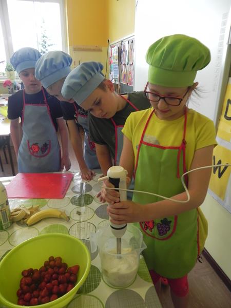Drugoklasiści doskonale już też wiedzą, że kuchnia to prawdziwa skarbnica urządzeń elektrycznych. Przygotowanie koktajlu poprzedzone było zapoznaniem uczniów z urządzeniem jakim jest - blender oraz przypomnieniem zasad bezpiecznego posługiwania się sprzętem elektrycznym w kuchni. Odbyła się również pogadanka na temat znaczenia owoców w diecie ucznia.