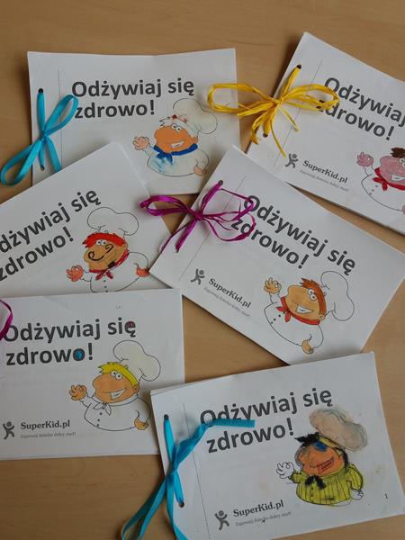 Wszyscy wiemy, jak ważna dla naszego zdrowia jest prawidłowa dieta. Niestety czasami trudno jest przekonać dzieci do zjedzenia zdrowego posiłku. Dlatego też podsumowując działania w ramach realizacji innowacji pedagogicznej „Dzieciaki w kuchni” uczniowie klasy IIa i III wykonali niecodzienne książeczki kucharskie. Książeczka „Odżywiaj się zdrowo” zawiera zasady zdrowego odżywiania. Oto one: