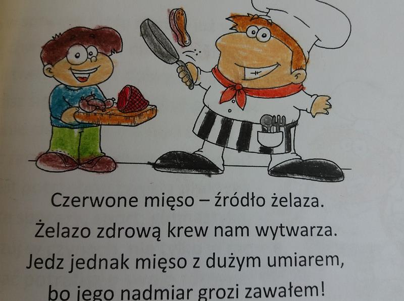 - Pilnie słuchaj, bystry smyku, co Ci powiem w tym wierszyku. Chcesz być mądry, silny, zdrowy to wbij słowa me do głowy! Warto się odżywiać zdrowo, by żyć dłużej – daję słowo!