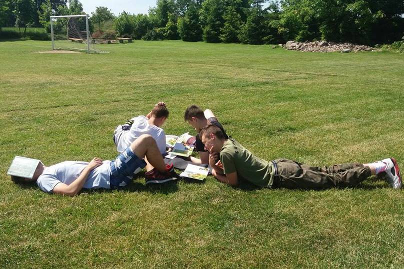 Moduł III to czytanie na trawie, czyli lektura wybranych pozycji książkowych. Czytanie rozpoczęliśmy wspólnie, a następnie każdy z nas kontynuował je samodzielnie w przyjemnym otoczeniu przyrody.