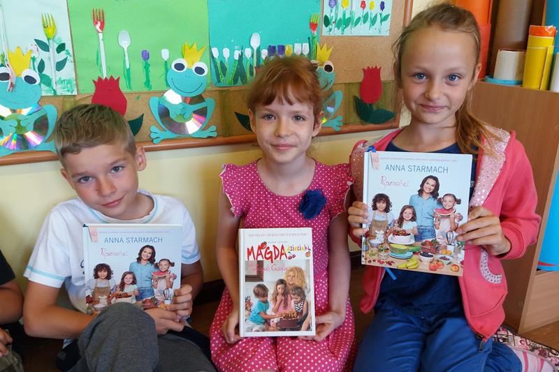 Książka „Pyszności. Kulinarne pomysły dla małych szefów kuchni" okazała się doskonałym prezentem dla małych kucharzy, którzy brali udział w innowacji pedagogicznej „Dzieciaki w kuchni”. Podręcznik do nauki gotowania zakupiliśmy dzięki życzliwości i wsparciu cudownych Rodziców.