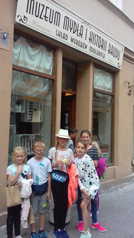 Po obiedzie kolejną atrakcją wycieczki była wizyta w Muzeum Mydła i Historii Brudu – najdziwniejszego i najzabawniejszego muzeum w Polsce. Podczas zwiedzania uczniowie wysłuchali opowieści przewodnika i wzięli udział w warsztatach mydlanych podczas, których każdy uczestnik mógł wykonać własne mydełko.