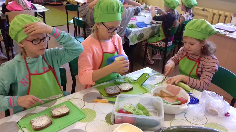 Nikogo nie trzeba chyba przekonywać, że kanapki wykonane własnoręcznie smakują najlepiej… Było smacznie, zdrowo, no i oczywiście kolorowo… Efekty pracy oraz sam proces przygotowywania drugiego śniadania możemy zobaczyć na zdjęciach. Zapraszamy do galerii.
