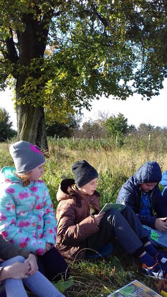 Tegoroczne Święto Drzewa obchodzono w naszej szkole po raz drugi. Przesłaniem tego Święta było hasło „Czytamy drzewom”. Wydarzenie rozpoczęło się wyjściem uczniów klasy III A w okolice szkoły, gdzie w obecności nauczyciela odbyło się wspólne „czytanie drzewom”. Na tę okazję uczniowie poprzypinali do swoich ubrań kolorowe liście i wyruszyli na spacer, aby poczytać drzewom opowieści oraz poznać znaczenie i ekologiczną rolę drzew w świecie przyrody. W wierszach, opowieściach oraz innych utworach o drzewach ukazane zostały związki pomiędzy literaturą i naturą. Rozmawialiśmy o problemach naszej planety i o tym, że bez pomocy ludzi drzewa nie będą mogły jej dalej pomagać.