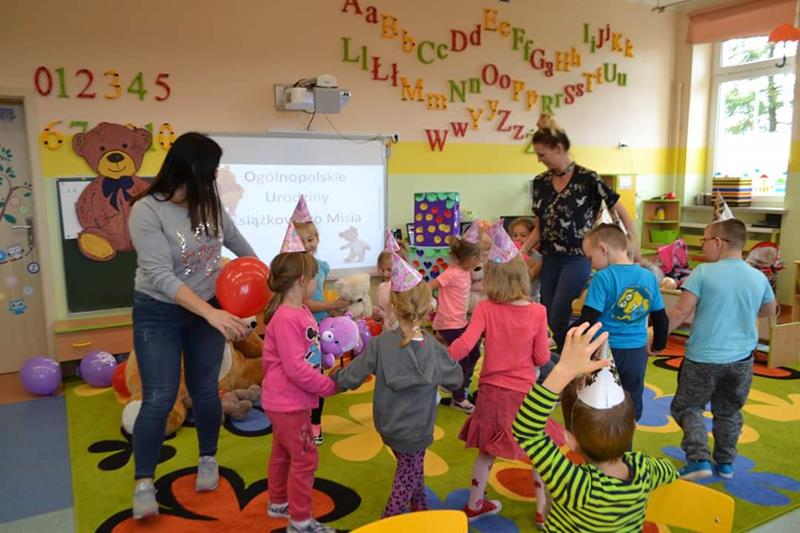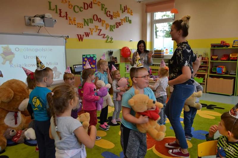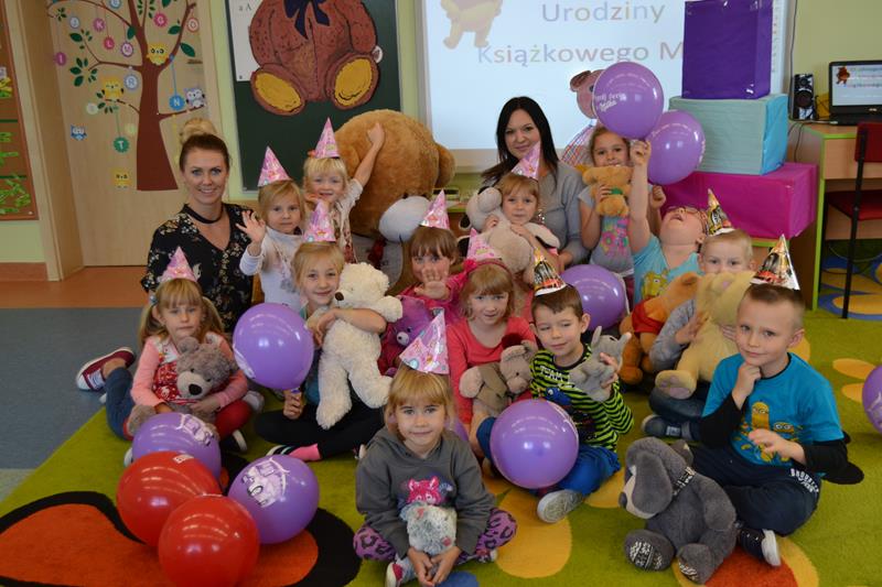 W tym roku dzieci z grupy Żabek naszego przedszkola wspólnie z wychowawczynią Karoliną Brodawka i bibliotekarką szkolną Iloną Przydatek urządziły Książkowym Misiom urodzinowe przyjęcie. Jak na urodziny przystało były tańce, zabawy, konkursy i „małe co nieco” - jak mawiał Kubuś Puchatek.