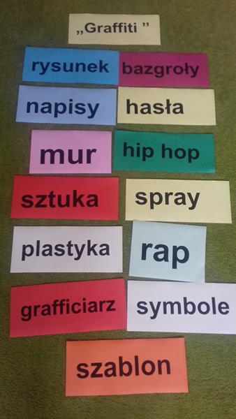 Uwieńczeniem tego zadania było stworzenie naszego pierwszego ortograficznego graffiti. Wszystko po to, by utrwalić pisownię wyrazów z trudnościami. Efekty pracy do zobaczenia w galerii.