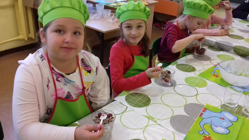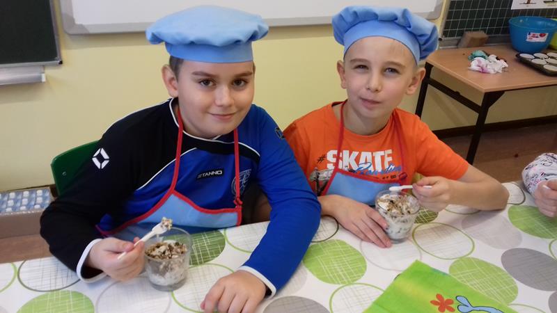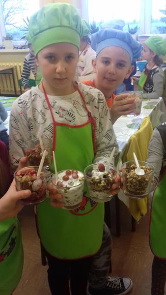 Coś pysznego, coś szybkiego i coś zdrowego - jogurtowa fantazja przekładana granolą, owocami i jogurtem naturalnym. Świetny pomysł na drugie śniadanie, które przygotowali uczniowie klasy IIIA w ramach kontynuacji innowacji pedagogicznej „Dzieciaki w kuchni” oraz programu „Szklanka mleka” realizowanego w naszej szkole.