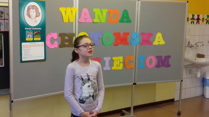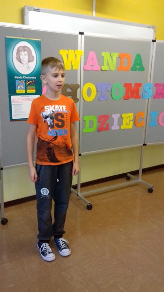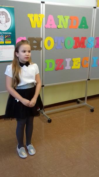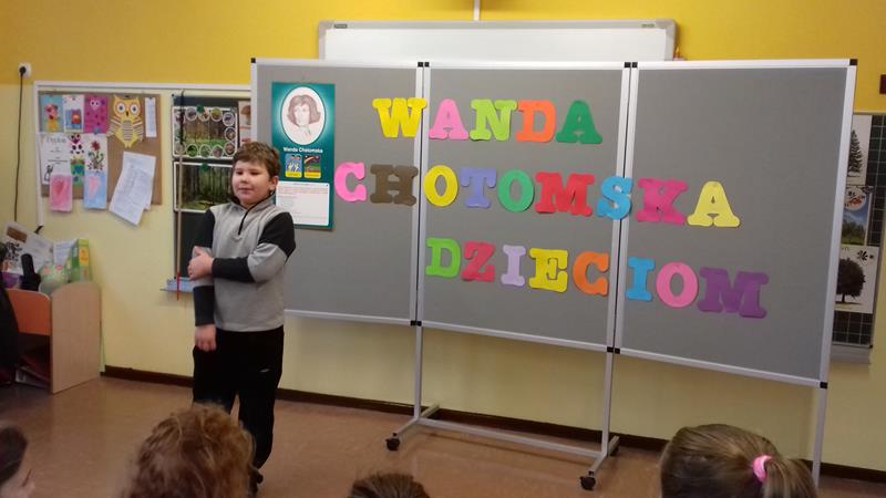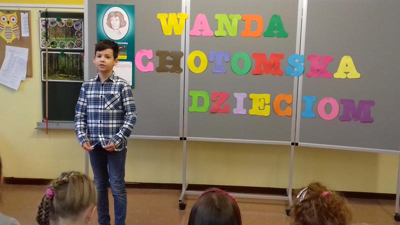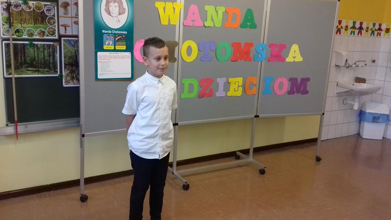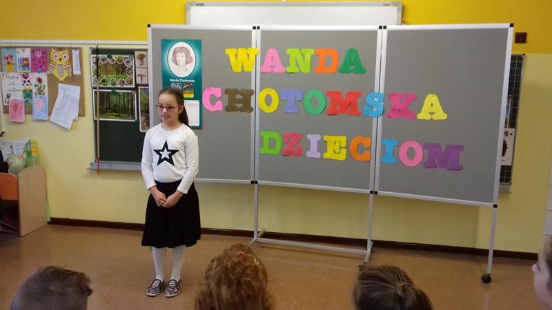 Dnia 26 października odbył się w naszej szkole Przegląd Twórczości Wandy Chotomskiej pod hasłem "Wanda Chotomska dzieciom", w którym uczestniczyli uczniowie klasy IIIA i IIIB edukacji wczesnoszkolnej. Wcześniejsze edycje popularyzowały twórczość Juliana Tuwima, Jana Brzechwy, a w tym roku Wandy Chotomskiej, bowiem 26 października przypada rocznica urodzin pisarki, zmarłej w sierpniu br.