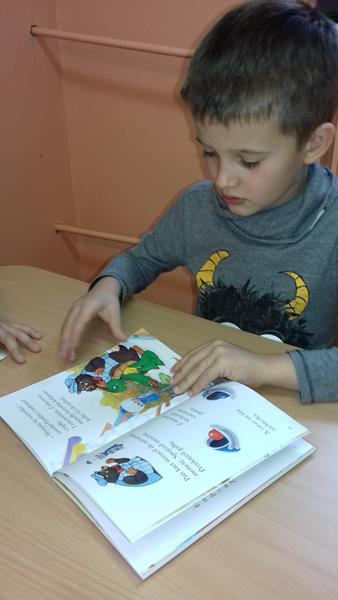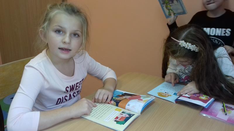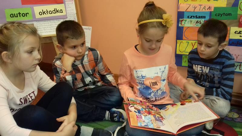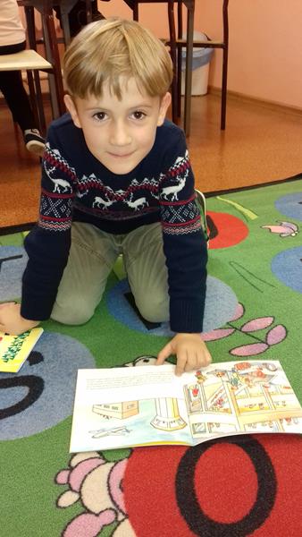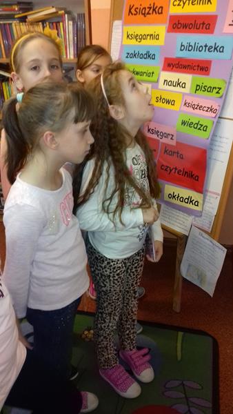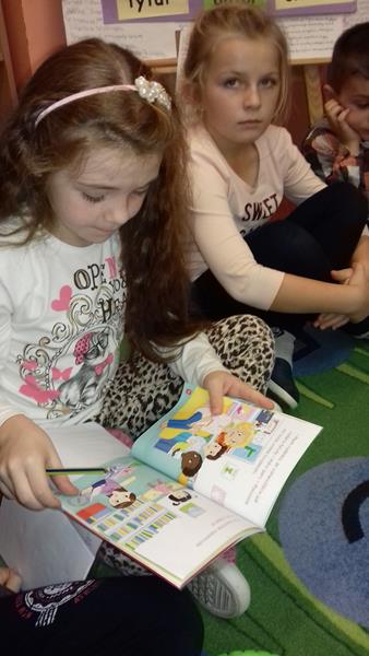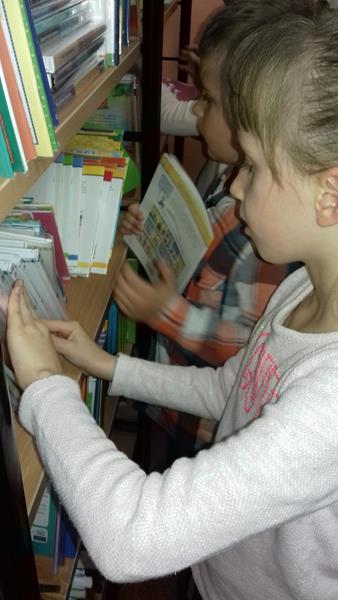 Podczas spotkania pani bibliotekarka przeczytała pierwszakom książkę pt. „Wizyta w bibliotece”. Publikacja skierowana jest właśnie dla dzieci, które stawiają pierwsze kroki w świecie liter. Tekst podzielony jest na sylaby dzięki czemu najmłodsi bez trudu mogą podejmować próby samodzielnego czytania.