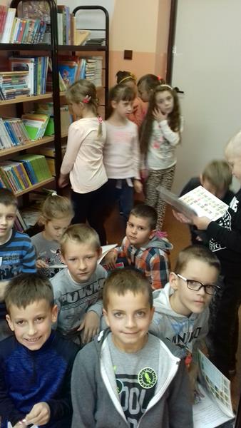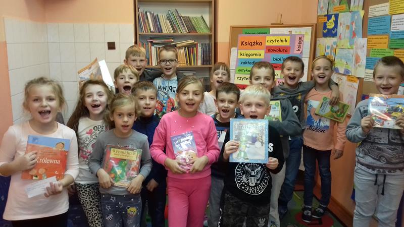 Dnia 27 października z wizytą czytelniczą do biblioteki szkolnej przyszli uczniowie klasy I edukacji wczesnoszkolnej. Co prawda pierwszoklasiści już od września wypożyczają książki, ale to właśnie w piątek oficjalnie odbyło się przyjęcie uczniów do grona czytelników biblioteki.