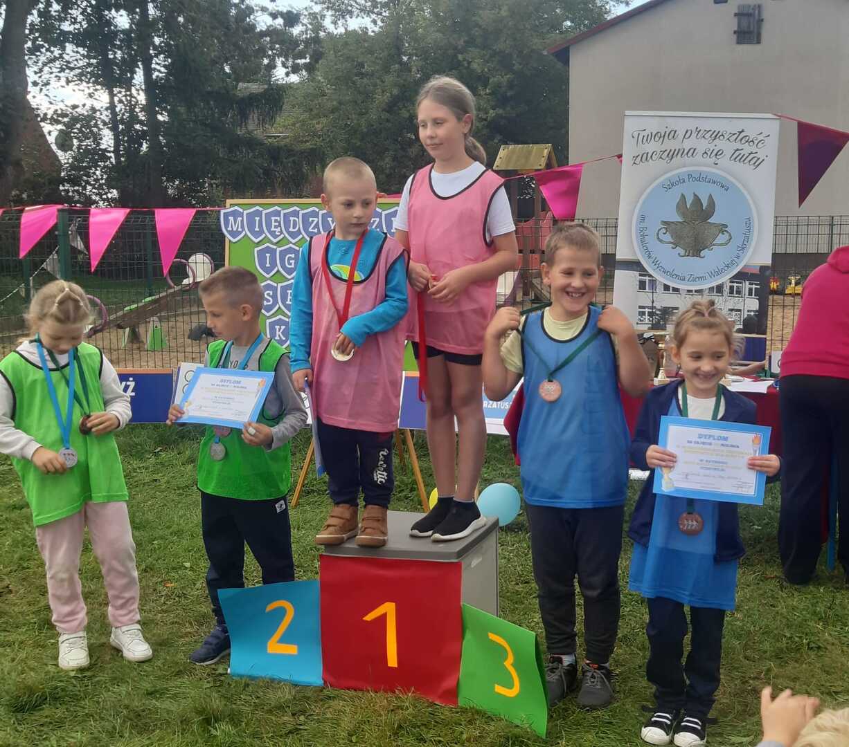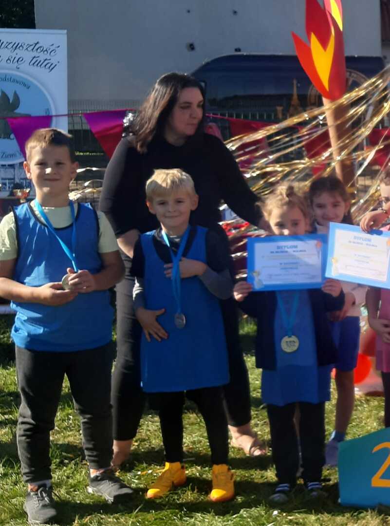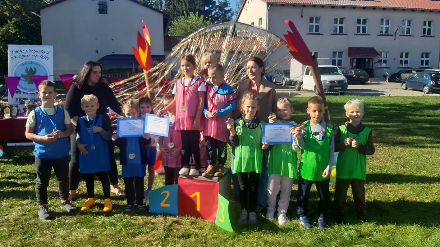 Dnia 23.09.2025 roku 12 uczniów z naszej szkoły wzięło udział w I Międzyszkolnej Olimpiadzie Sportowej uczniów klas I–III.