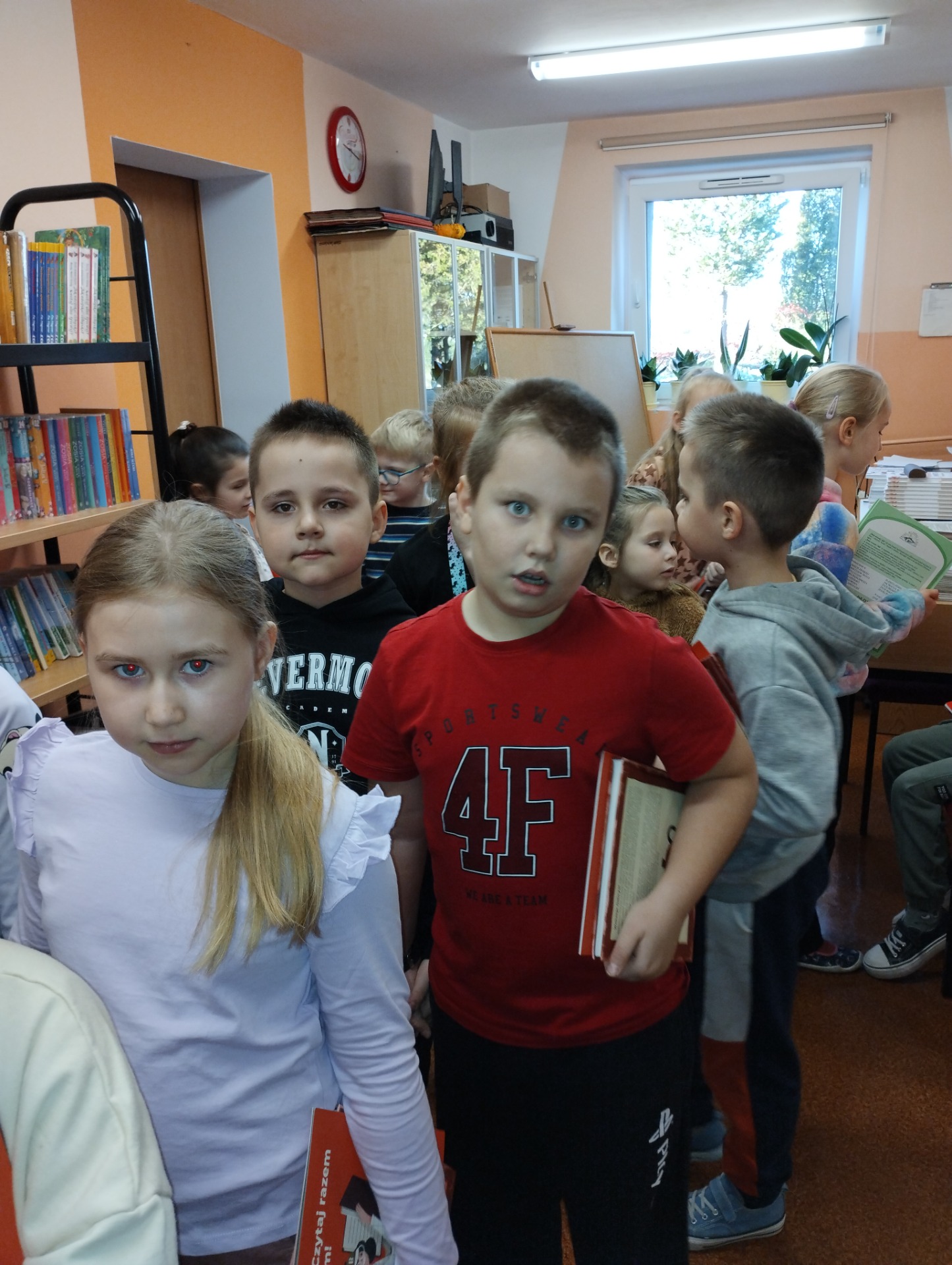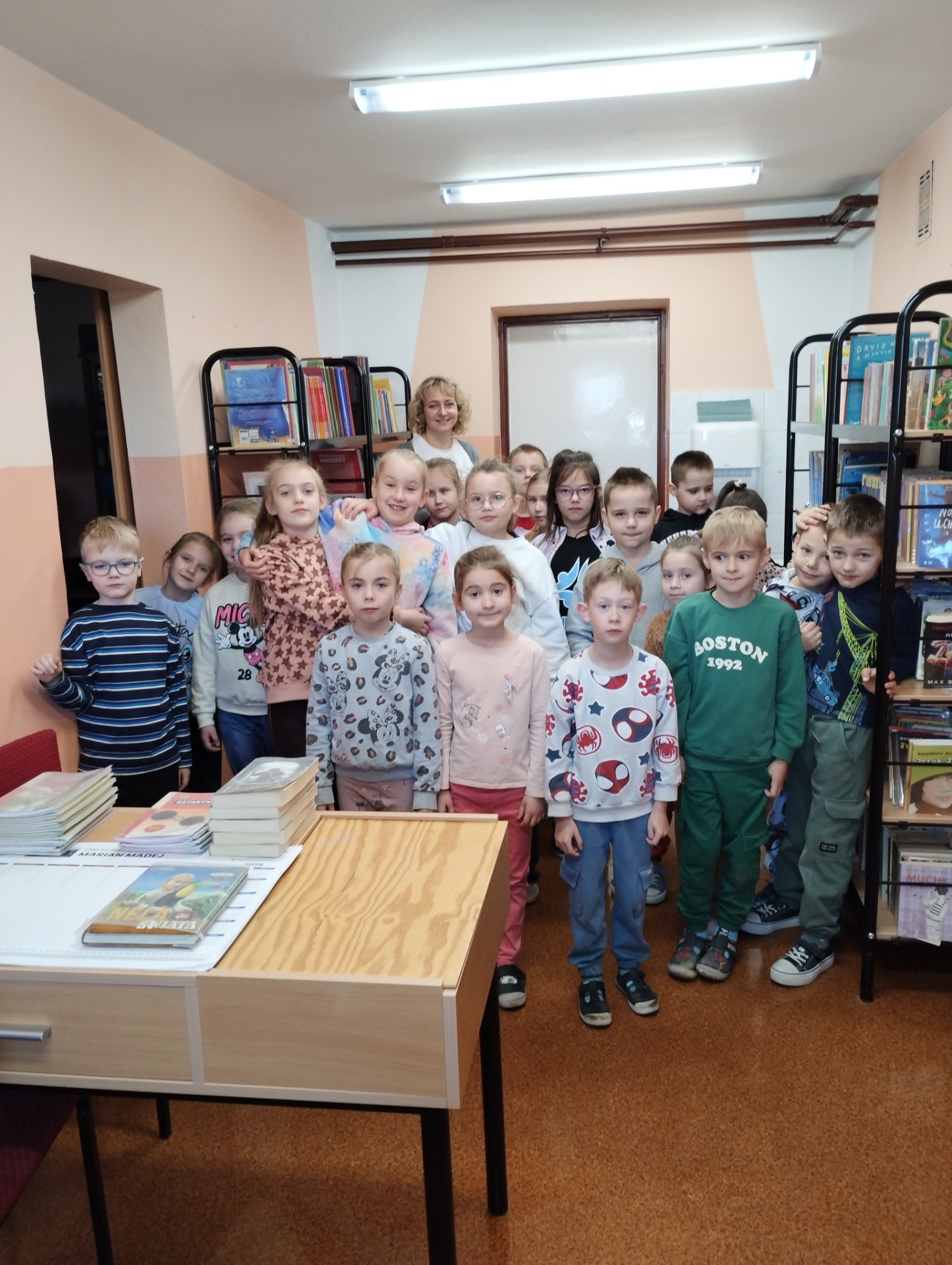 W piątek 21 listopada uczniowie klasy pierwszej razem z wychowawczynią – panią Izą odwiedzili bibliotekę szkolną. Podczas spotkania dzieci dowiedziały się, jak wypożyczać książki i dbać o nie. Poznały regulamin biblioteki a także miały okazję obejrzeć kolorowe i ciekawe książki przeznaczone specjalnie dla najmłodszych czytelników. Było to wyjątkowe wydarzenie, które pozwoliło dzieciom poznać zasady korzystania z biblioteki oraz odkryć bogactwo książek dostępnych na półkach.