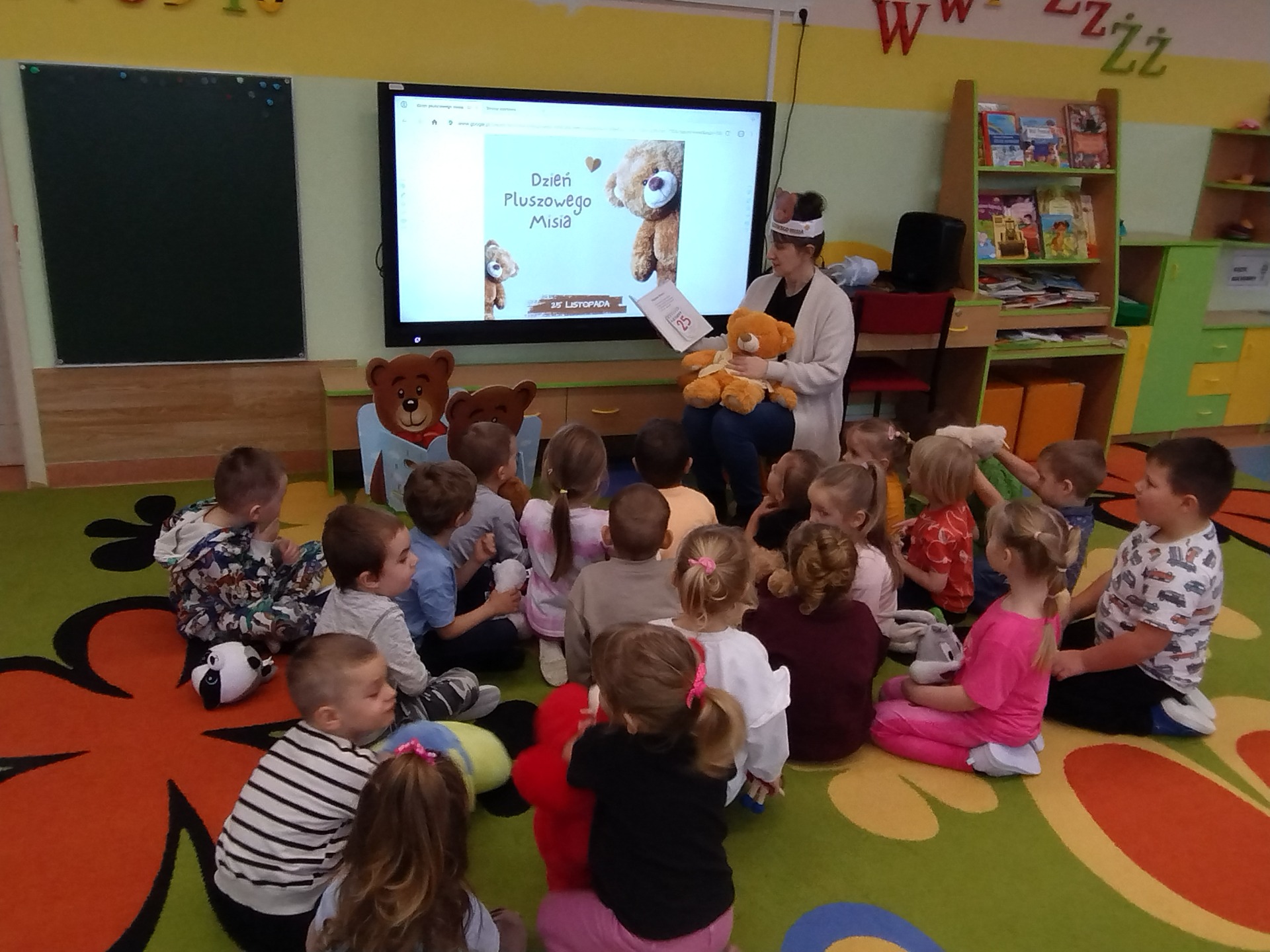25 listopada przedszkolaki świętowały Światowy Dzień Pluszowego Misia. Jest to święto, które przypomina, jak ważne są zabawki w życiu dziecka i ile radości potrafią sprawić. Tego dnia dzieci przyniosły do przedszkola swoje ulubione misie, a sala wypełniła się kolorowymi pluszakami.