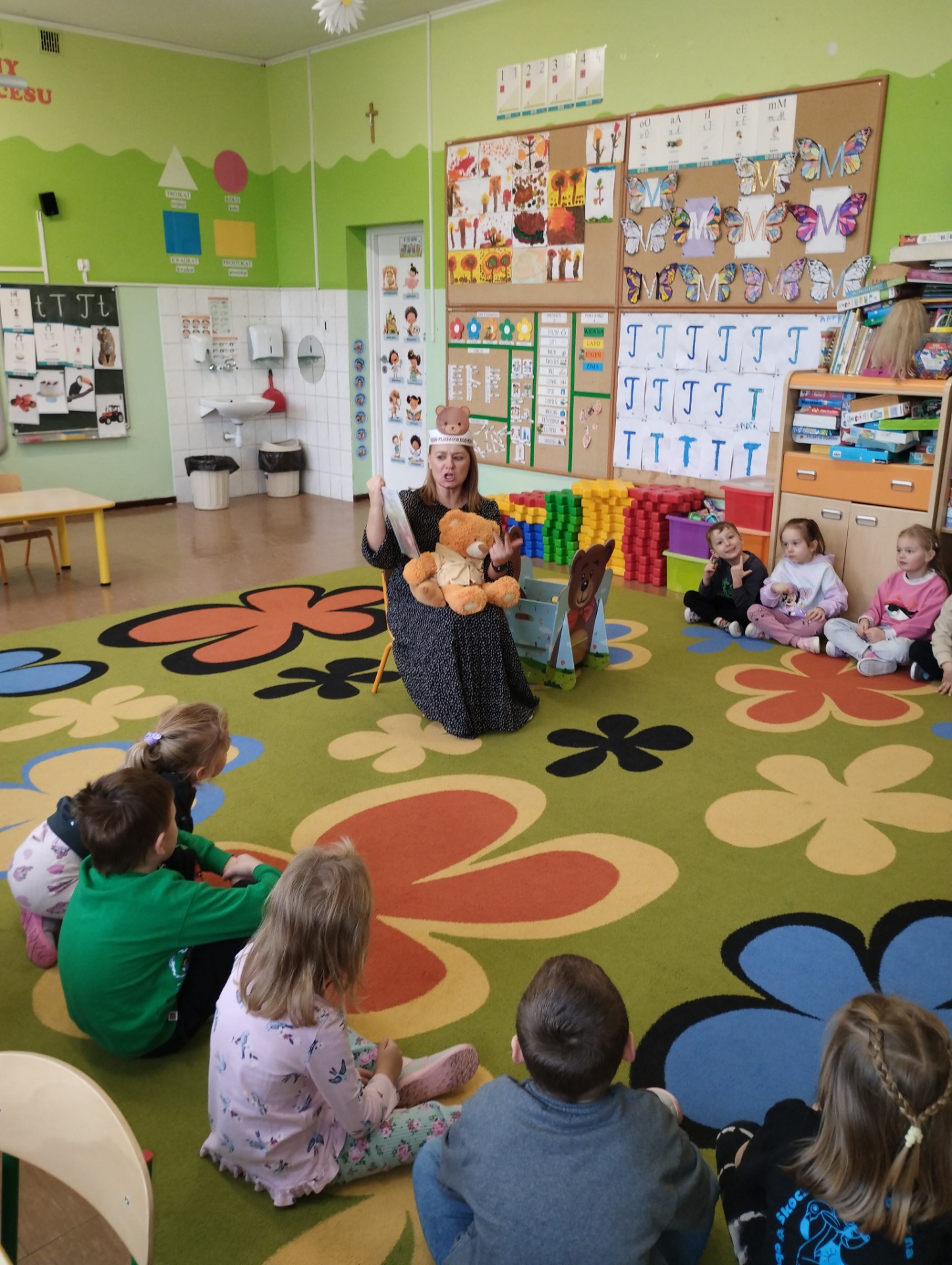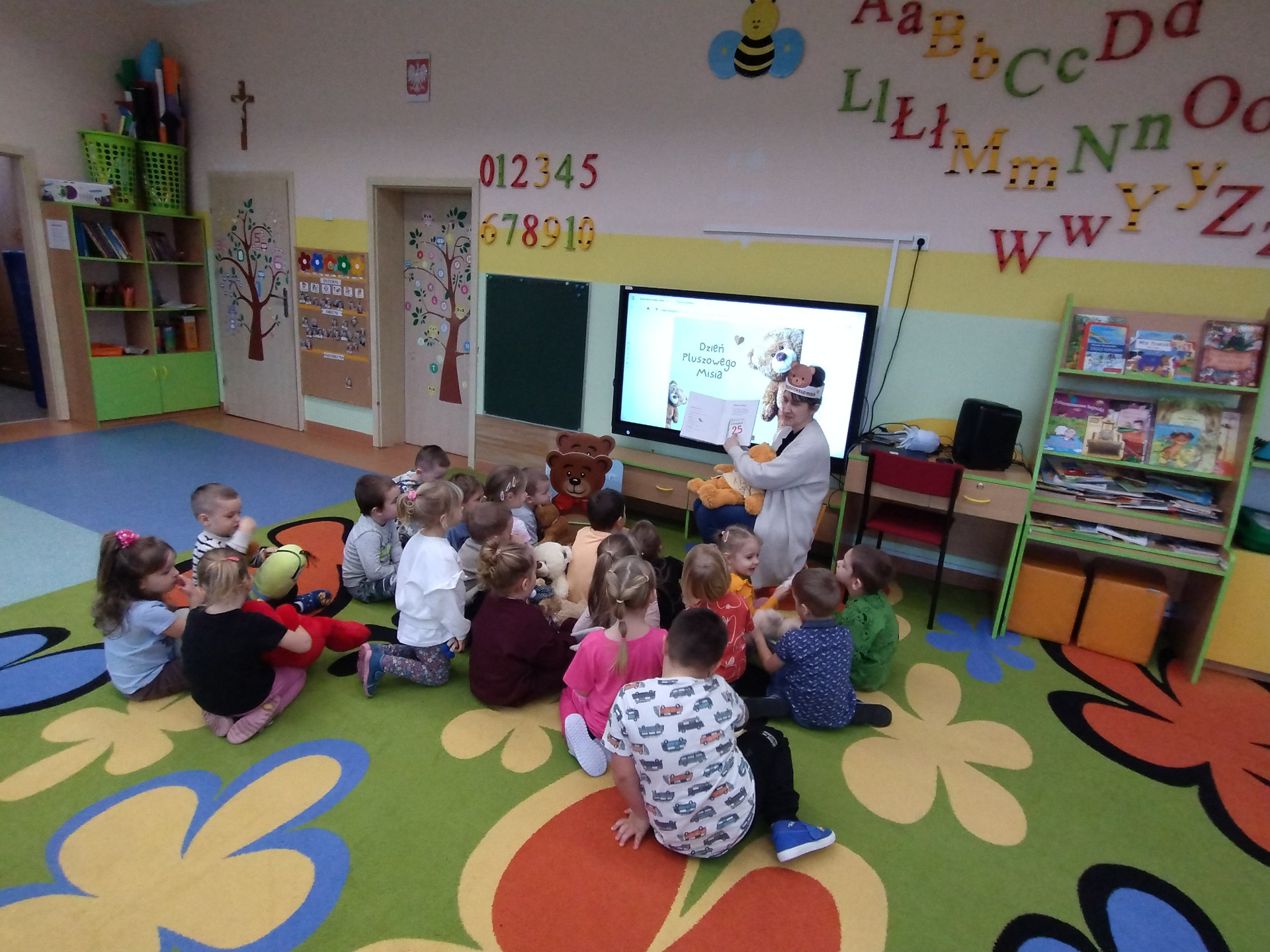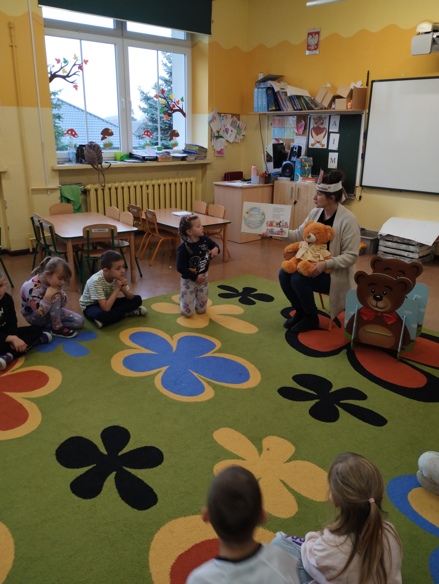 Przedszkolaki uczestniczyły m. in. we wspólnych zabawach z misiami i zajęciach rysunkowych. Odbyły się również zajęcia czytelnicze podczas których wysłuchały wierszy autorstwa pani Wiesławy Pyrcz „Misie i niedźwiadki”.