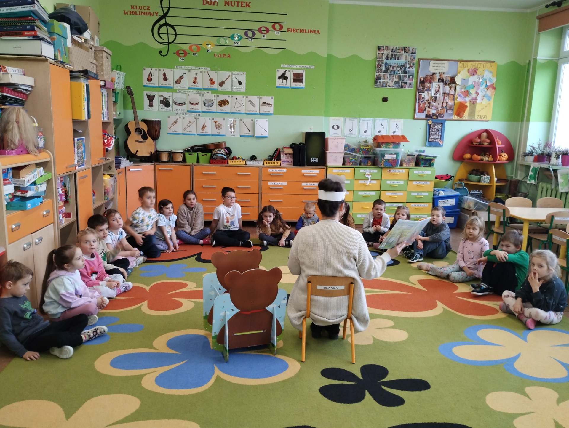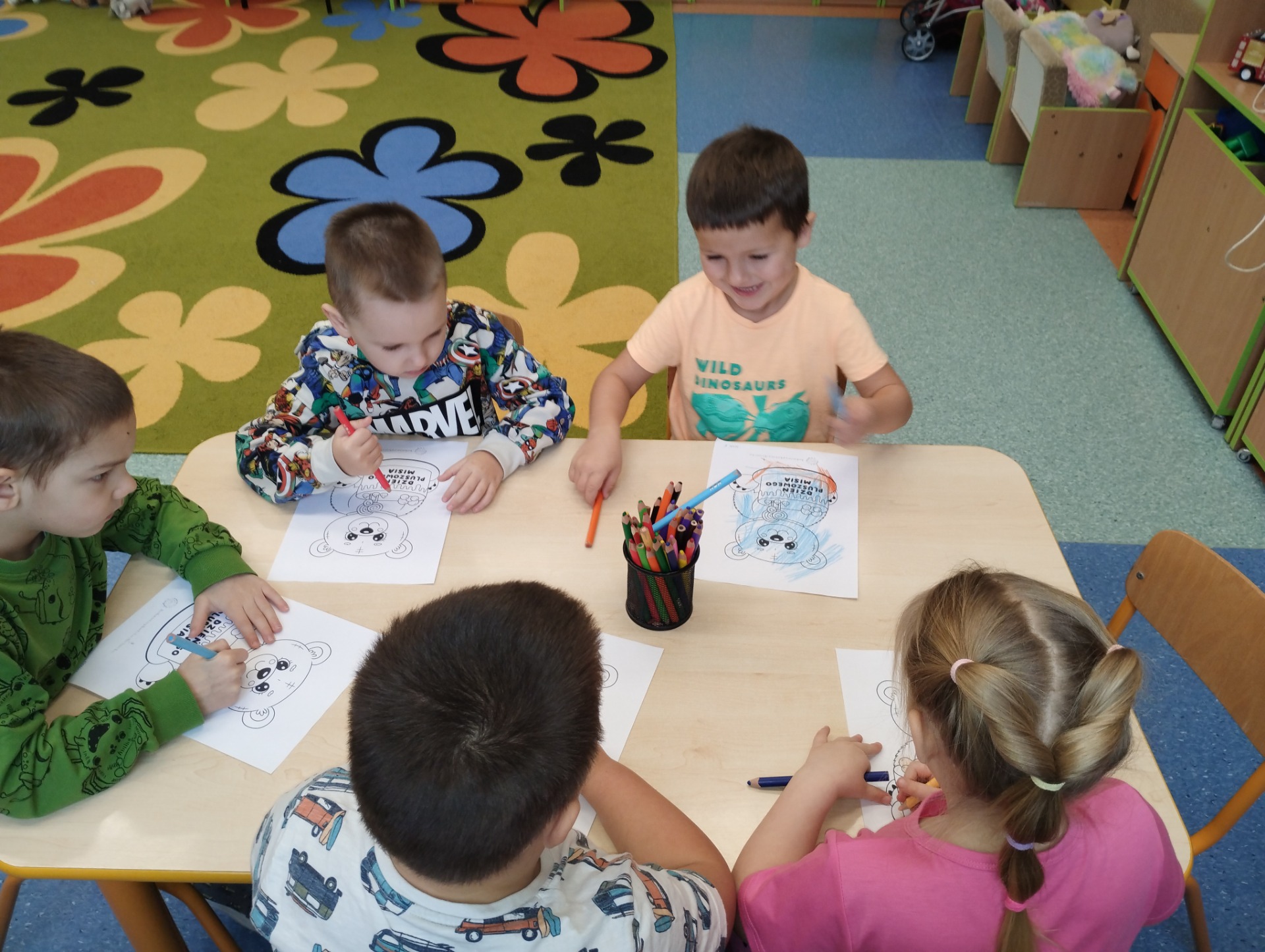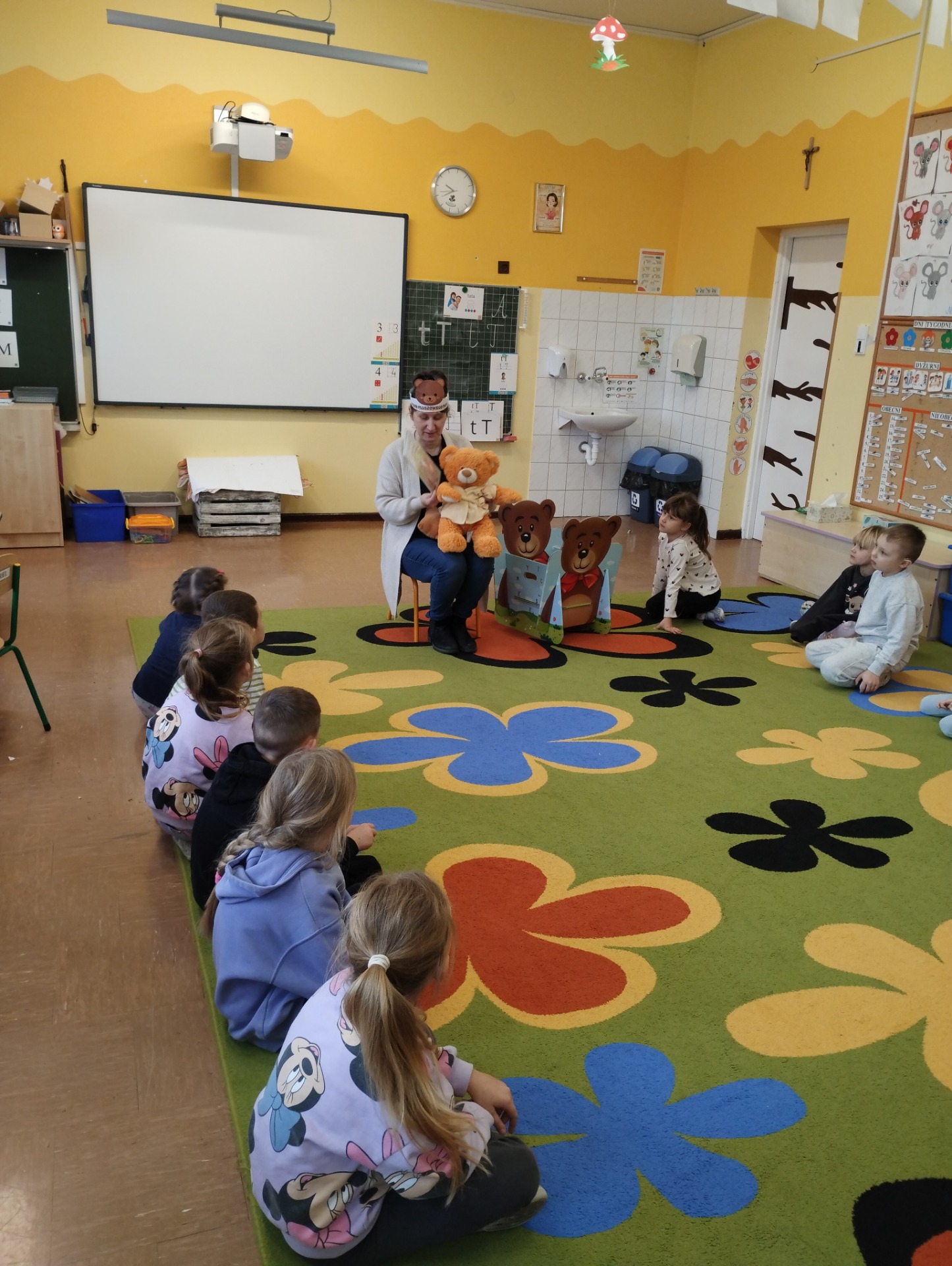 Przedszkolaki uczestniczyły m. in. we wspólnych zabawach z misiami i zajęciach rysunkowych. Odbyły się również zajęcia czytelnicze podczas których wysłuchały wierszy autorstwa pani Wiesławy Pyrcz „Misie i niedźwiadki”.