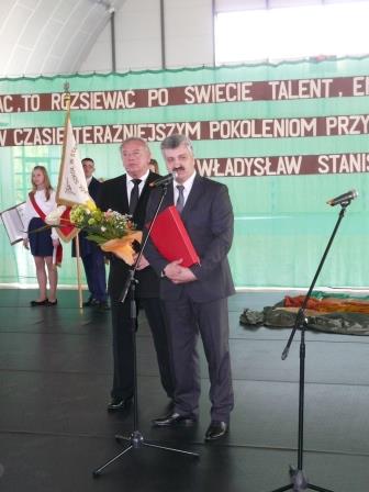 Po wyprowadzeniu pocztów sztandarowych zabrała głos Pani Dyrektor Jolanta Baran. W swym przemówieniu odniosła się do początków szkoły, zmian, jakie zaszły w niej w ostatnich latach oraz pomocy ze strony Organu Prowadzącego, różnych instytucji i sponsorów. Pamiątkowymi statuetkami wyróżniono wieloletnich Przyjaciół Szkoły: