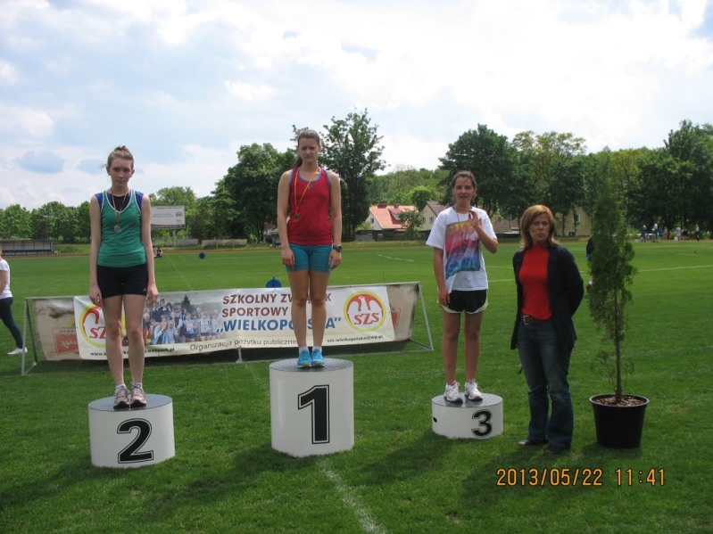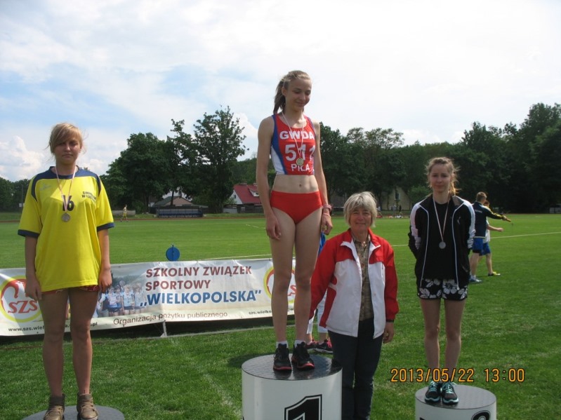W dniu 22.05.2013 r. na Stadionie Miejskim w Złotowie odbyły się Indywidualne Mistrzostwa Rejonu Pilskiego w LA. Prawo startu w tych zawodach wywalczyły sobie 3 uczennice z naszego gimnazjum – finalistki mistrzostw powiatu. W zawodach startowali uczniowie z kilkunastu gimnazjów z rejonu pilskiego. Bardzo udanie zaprezentowały się zawodniczki naszej szkoły, zdobywając 2 złote medale: Patrycja Cecka w chodzie na 2000 m (12,29min), Agata Trzaskalska w biegu na 100m (13,24 s). Potwierdziły tym samym wysoką formę przed finałem w Poznaniu. Karolina Sikora zajęła VII miejsce w biegu na dystansie 1000 m.