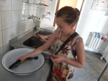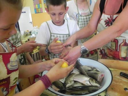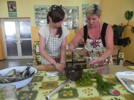 12 czerwca odbyły się ostatnie zajęcia kółka kulinarnego realizowane w ramach projektu edukacyjnego „Ryby maja głos”. Uczniowie przygotowali rybę z grila. Wstępne przygotowanie ryb oraz surówek odbyło się na stołówce szkolnej, a dalsza część zajęć na boisku szkolnym przy grilu.