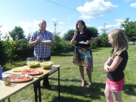 W zajęciach tyh udział wzięli: przedstawiciele Rady Rodziców w osobach Barbary i Tomasza Ceckich, dyrektor szkoły Jolanta Baran, pracownik Nadnoteckiej Grupy Działania Jacek Gawroński oraz intendentka Elżbieta Bączkowska. Wszyscy byli zadowoleni ze wspólnego grillowania. Ryba była pyszna, a pogoda wspaniała.
