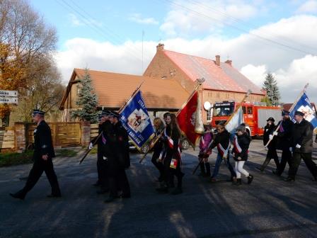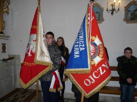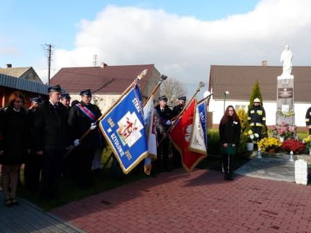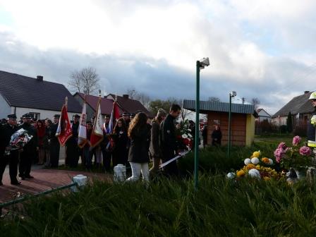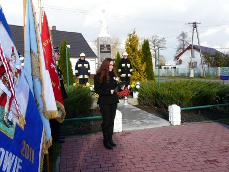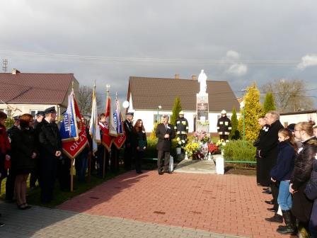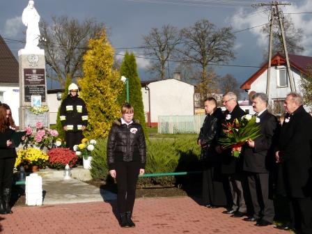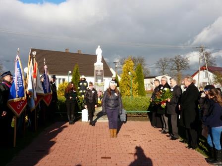 Pod pomnikem, po odśpiewaniu hymnu państwowego i recytacji wierszy patriotycznych przez uczennice gimnazjum: Patrycję Rachwalską, Wiktorię Szymanek i Natalię Ptak, delegacje złożyły kwiaty.