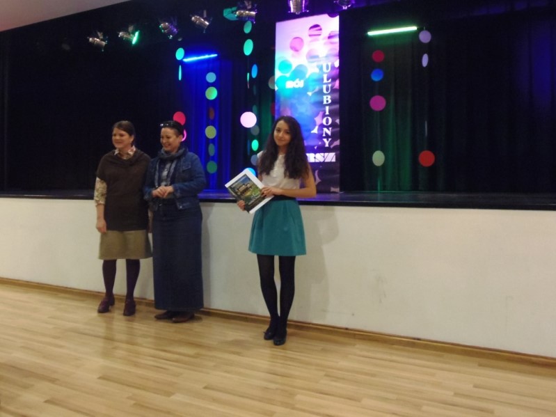 Jednak nie o moich zainteresowaniach chciałam napisać, a o tym, że znowu możemy być dumni z Martyny Oleszczyk, uczennicy klasy gimnazjalnej III b naszej szkoły. Martyna otrzymała za swą recytację wiersza Agnieszki Osieckiej „Kamień z serca” pierwszą nagrodę! Zdystansowała prawie pięćdziesięciu deklamatorów, pokazała dużą dojrzałość w interpretacji i rozwijający się talent. Przypomnę, że do dzisiaj wspominamy jej rewelacyjną interpretację „Ptasiego radia” Juliana Tuwima, za którą otrzymała kilka lat temu( jedyną do tej pory na tym konkursie) nagrodę Grand Prix.