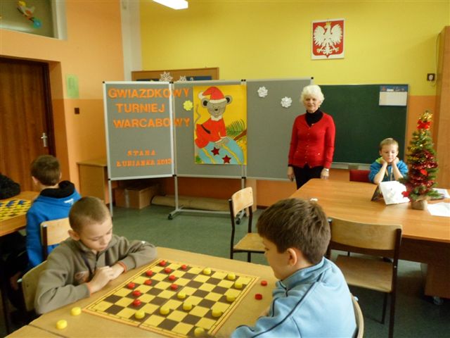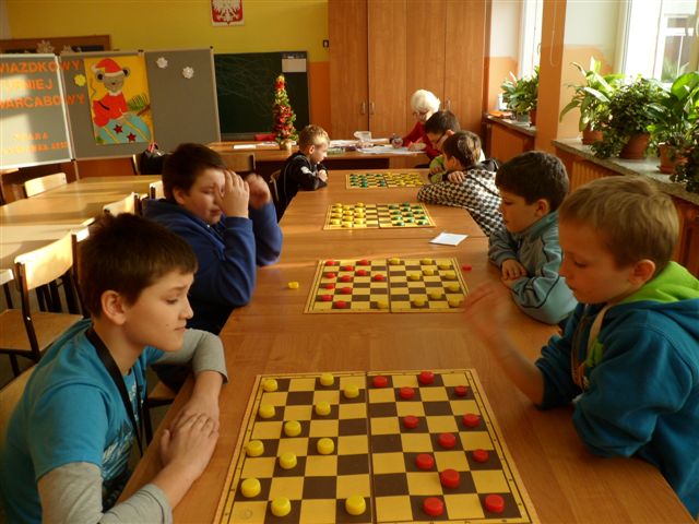 18 grudnia br. odbył się w świetlicy szkolnej gwiazdkowy turniej w warcabach klasycznych. Gra w warcaby od lat cieszy się nie słabnącym powodzeniem wśród społeczności uczniowskiej, na co wskazuje duża ilość osób chcących spróbować swoich sił i zmierzyć się z innymi.