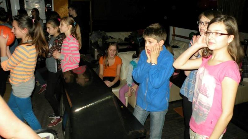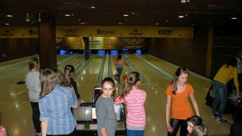 Ponad dwugodzinny pobyt w podziemiach hotelu „Gromada Rodło” minął naszej młodzieży bardzo szybko. Uczniowie spędzili czas tocząc zaciętą rywalizację sportową podzieleni na osiem zespołów. Dla niektórych była to pierwsza sposobność spróbowania swoich sił w grze w kręgle, inni z kolei pobijali swoje życiowe rekordy. Następnie przyszedł czas na przyjemności kulinarne, za sprawą miejscowej pizzerii.