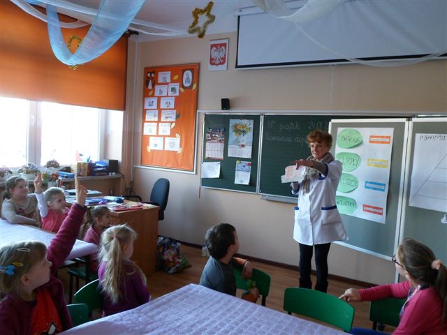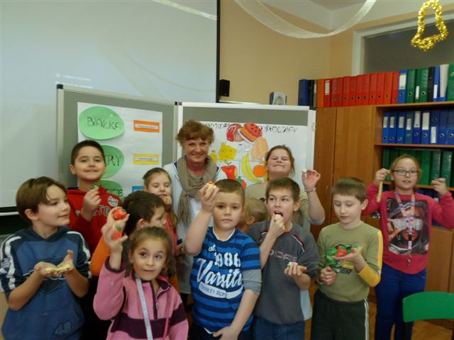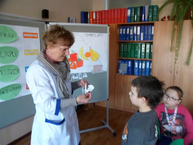 23 stycznia br. odbyły się kolejne zajęcia dotyczące zdrowego odżywiania. Podczas zajęć w świetlicy szkolnej gościliśmy panią pielęgniarkę Janinę Gołębiewską, która przypomniała uczniom, co stanowi podstawę zdrowego odżywiania się, a jakie produkty powinniśmy ograniczać planując codzienne menu.