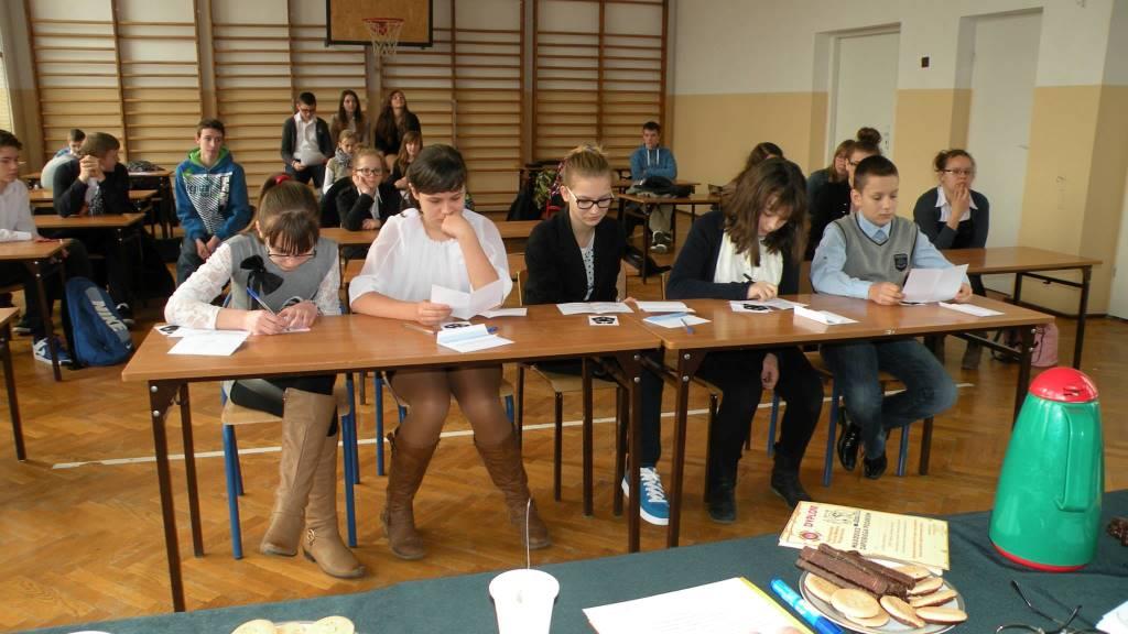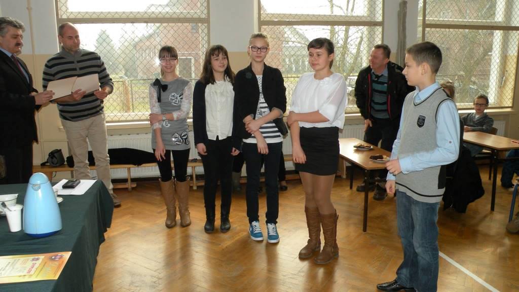 Jak każdego roku zadania konkursowe zostały podzielone na dwie części. Wszyscy uczniowie musieli rozwiązać test, a najlepsi walczyli w etapie ustnym. Gratulacje należą się wszystkim reprezentantom, ale szczególne brawa dla Dominiki Bujanowskiej (I miejsce), Anity Cioch (II miejsce), Szymona Bujanowskiego (III miejsce) i Oliwii Stawińskiej (IV miejsce). Oliwia po etapie pisemnym była druga! 22 marca zdobywcy pierwszych trzech miejsc będą kontynuowali zmagania na etapie powiatowym, w Kruszewie.