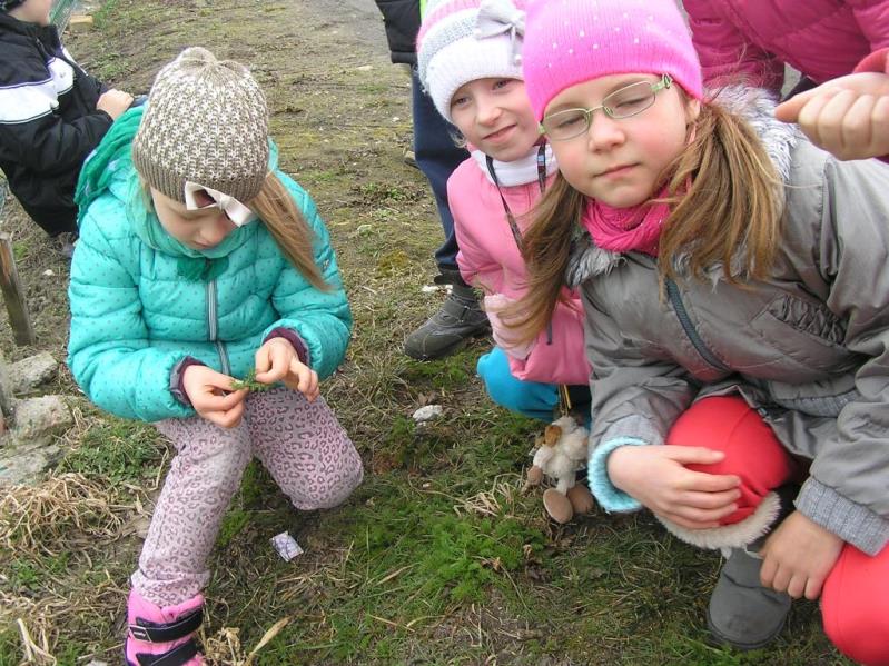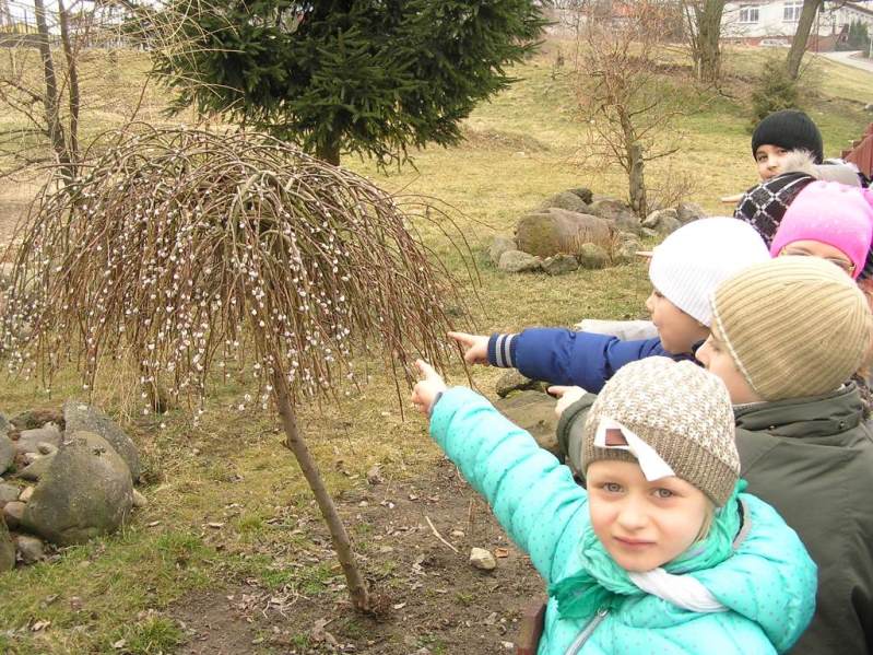 W marcu charakterystyczna jest intensywna zmienność pogodowa, stąd porzekadło ludowe mówi: w marcu jak w garncu. Słońce stoi wysoko na niebie i budzi do życia otaczającą nas przyrodę. W okresie przedwiośnia wschodzą pierwsze rośliny zielne oraz zaczynają krążyć soki w drzewach i krzewach, rozpuszcza się lód na rzekach, stawach, jeziorach. Podczas wycieczki dzieci dostrzegły pierwsze kwiaty – przebiśniegi, zgrubiałe pąki na drzewach i krzewach, kwitnącą leszczynę, na wierzbie bazie, nad głowami klucze ptaków, na polu oziminę, kopce kreta. Wspaniałą zabawą w czasie spaceru jest fotografowanie przyrody. Tylko fotografia jest w stanie zatrzymać przyrodę. Za kilka dni uczniowie pierwszej klasy wybiorą się na kolejną wycieczkę, w celu dalszej obserwacji zmian zachodzących w przyrodzie. Mając zdjęcia z pewnością łatwiej dostrzegą wszelkie zmiany. Zachęcamy wszystkich do obejrzenia fotografii wykonanych przez klasę pierwszą, a tym samym pragniemy zachęcić do obserwacji budzącej się do życia przyrody.