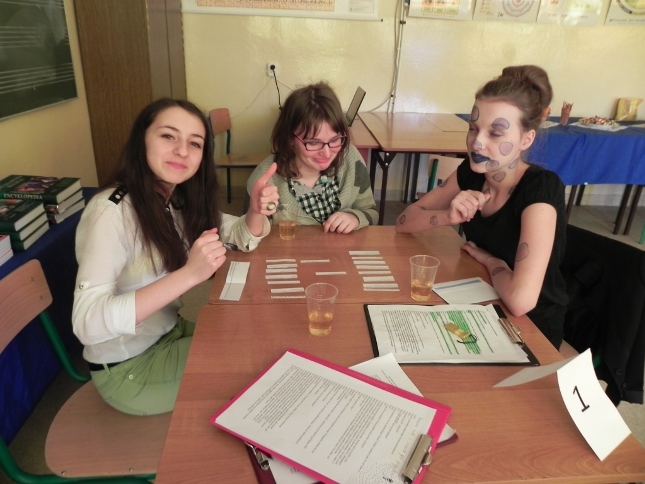 Zespół Szkół w Starej Łubiance reprezentowały dwie drużyny. Z klasy III A - Dominika Bujanowska, Dominika Siedlecka, Anita Cioch, natomiast z klasy III B - Emilia Górzyńska, Martyna Oleszczyk i Ewa Matusiak. Zadaniem każdej z drużyn było przygotowanie prezentacji dotyczącej tematyki HIV/AIDS oraz odegranie scenki mającej na celu uświadomienie, że w każdej chwili naszego życia jesteśmy narażeni na kontakt z wirusem HIV. Po wielu zmaganiach wyłoniono zwycięską drużynę. I miejsce zajęły uczennice klasy III B reprezentujące naszą szkołę (Emilia Górzyńska, Martyna Oleszczyk i Ewa Matusiak), II i III miejsce zajęły drużyny z Zespołu Szkół im. J. Korczaka w Szydłowie, natomiast IV miejsce otrzymała nasza drużyna z klasy III A. Serdecznie gratulujemy wszystkim uczestnikom konkursu!