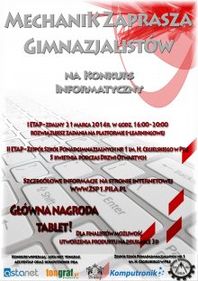 Pilski "Mechanik" zaprasza gimnazjalistów na Konkurs Informatyczny. Zgłoszenia do 12 marca br.