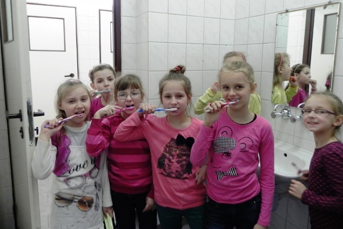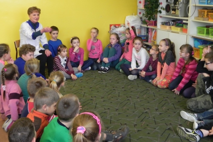 We wtorek, 18 marca 2014r. klasy drugie szkoły podstawowej gościły panią Janinę Gołębiowską, naszą szkolną pielęgniarkę. Tematem przewodnim spotkania z panią pielęgniarką była higiena jamy ustnej. Dzieci miały okazję przypomnieć sobie wiadomości o sposobie dbania o zęby, roli diety i konieczności regularnych wizyt u stomatologa. Dzieci obejrzały również film przedstawiający zasady higieny jamy ustnej. Po skończonych zajęciach odbyła się fluoryzacja zębów.