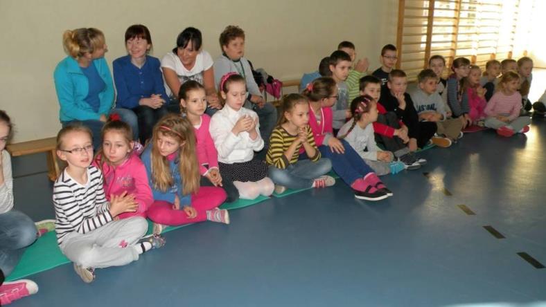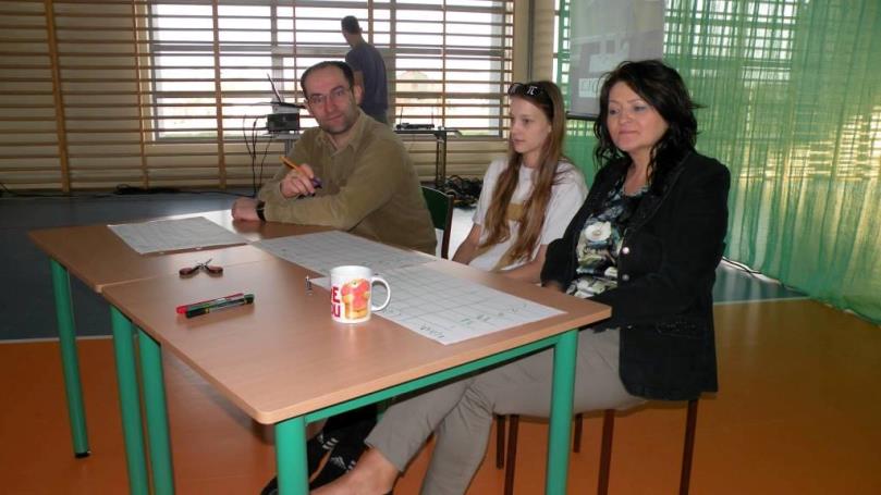 Następnie czekały na nas konkurencje muzyczne, np. zaśpiewanie „Stokrotki”, czy zatańczenie kaczuszek. W zabawę włączyli się również nauczyciele, którzy wraz ze swoimi podopiecznymi musieli wykonać przydzielone zadania. Tak, na przykład, Pani Agnieszka Cybulska zachęciła jedną z klas do włączenia się w taniec „Macarena”. Natomiast Pan Tomasz Znajdek razem ze swoimi uczniami tańczył do przeboju „Gangnam Style”, zaś Pan Tomasz Górzny, przyłączył się do zabawy, śpiewając „Wlazł kotek na płotek”. Wszyscy spisali się bardzo dobrze :)