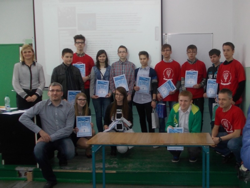 Główna nagroda, czyli Tablet firmy Lenovo powędrował do Sylwii Parzniewskiej z Gimnazjum w Zespóle Szkół nr 1 im. Jana Brzechwy. II miejsce zajął Hubert Stefaniak z Gimnazjum w Zespole Szkół w Margoninie, natomiast na III pozycji znalazł się Mateusz Wołowicz z Gimnazjum nr 5 z Piły. Uczeń naszego gimnazjum Michał Podkowa zajął IV miejsce, do trzeciego miejsca zabrakło mu 1 pkt. Każdy z finalistów może czuć się zwycięzcą, gdyż wszyscy otrzymali za swój wysiłek i odwagę nagrody rzeczowe. Były to pendrivy, książki o tematyce związanej z systemami operacyjnymi, a także koszulki z logo szkoły.