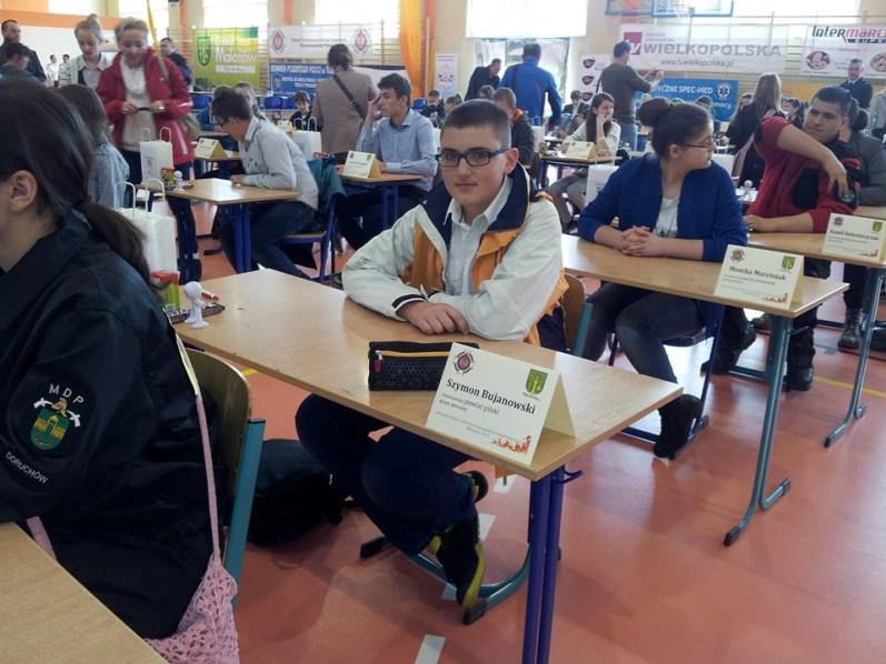 Dnia 26.04.2014 r. Szymon Bujanowski reprezentował powiat pilski na Wielkopolskich Eliminacjach XXXVII edycji Ogólnopolskiego Turnieju Wiedzy Pożarniczej „Młodzież Zapobiega Pożarom”. Impreza została zorganizowana w Ośrodku Sportu i Rekreacji w Malanowie. Długie godziny nad testami i przepisami pożarniczymi niestety nie przyniosły oczekiwanego efektu i nasz uczeń nie znalazł się w finałowej piątce walczących o awans do ostatniego, ogólnokrajowego etapu. Trzeba jednak przyznać, że wrócił bogatszy o nowe doświadczenia, a wiedza jaką zdobył w trakcie przygotowań z pewnością jeszcze zaprocentuje. Dziękujemy wszystkim, którzy pomogli w ułatwieniu (materiały, transport, czas) Szymonowi startu w konkursie.